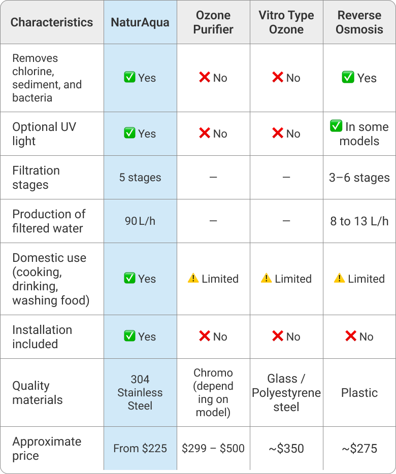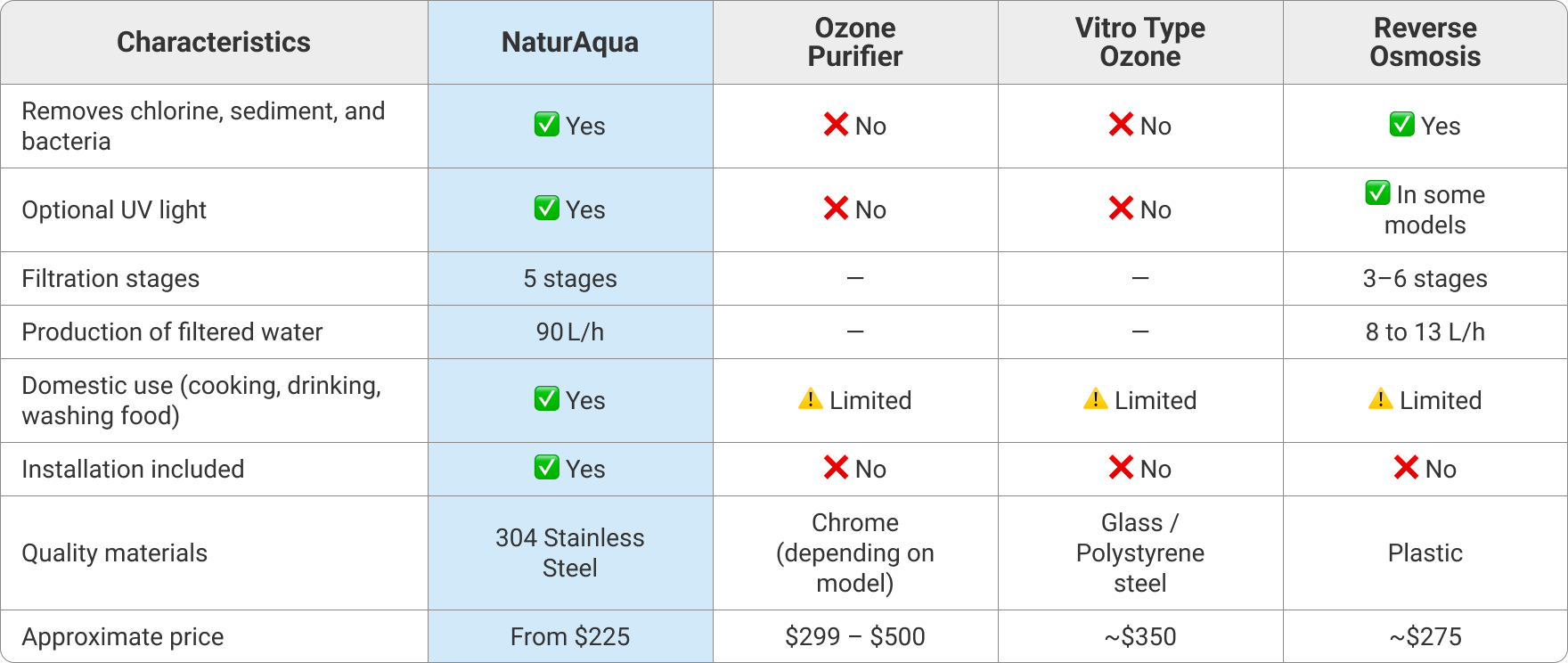 It includes all the benefits of the standard system, with an extra layer of protection thanks to ultraviolet light, which eliminates bacteria and microorganisms. Ideal for areas where more thorough purification is needed.
