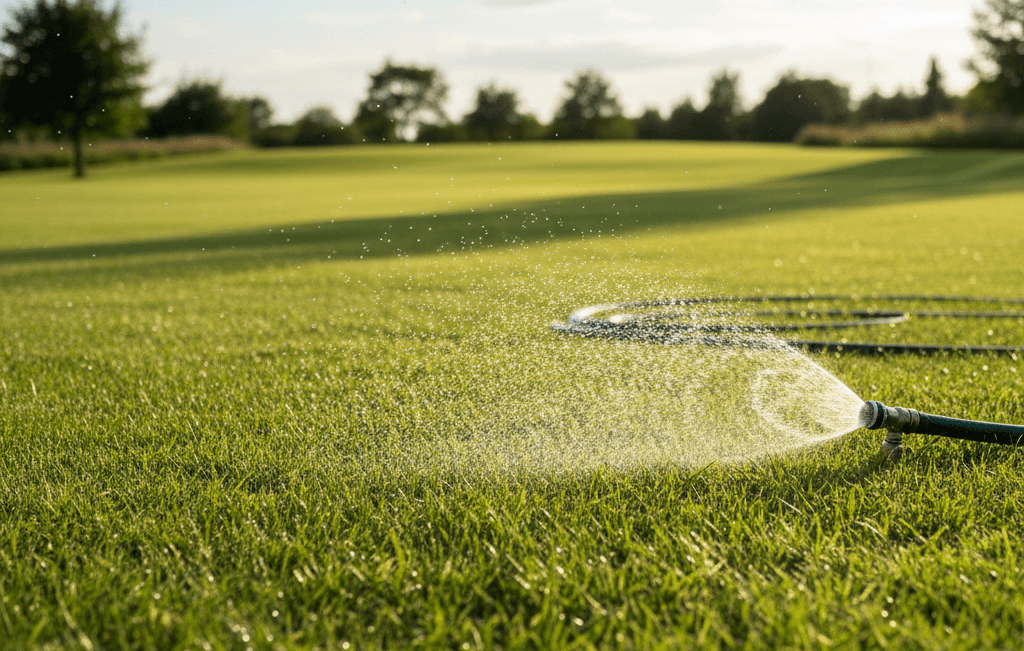 Usa una manguera con boquilla reductor de caudal: baja el flujo a 5 litros por minuto. Riega al atardecer o amanecer, directo a la base de las plantas para evitar mojar hojas y quemarlas. Para 10 metros cuadrados, 20 litros bastan si lo haces bien.